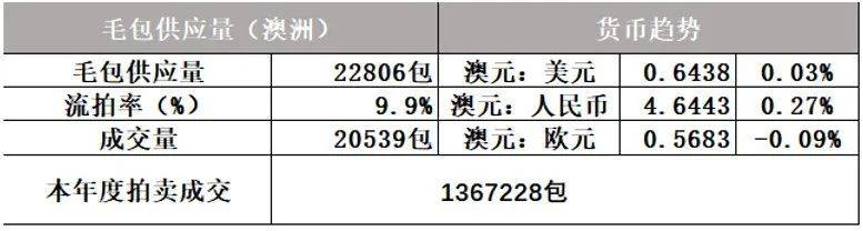 从各类型羊毛涨跌来看,杂交毛型号表现较好。以下为悉尼、墨尔本、弗里曼特尔三地羊毛拍卖价格详细数据(以澳元计价):